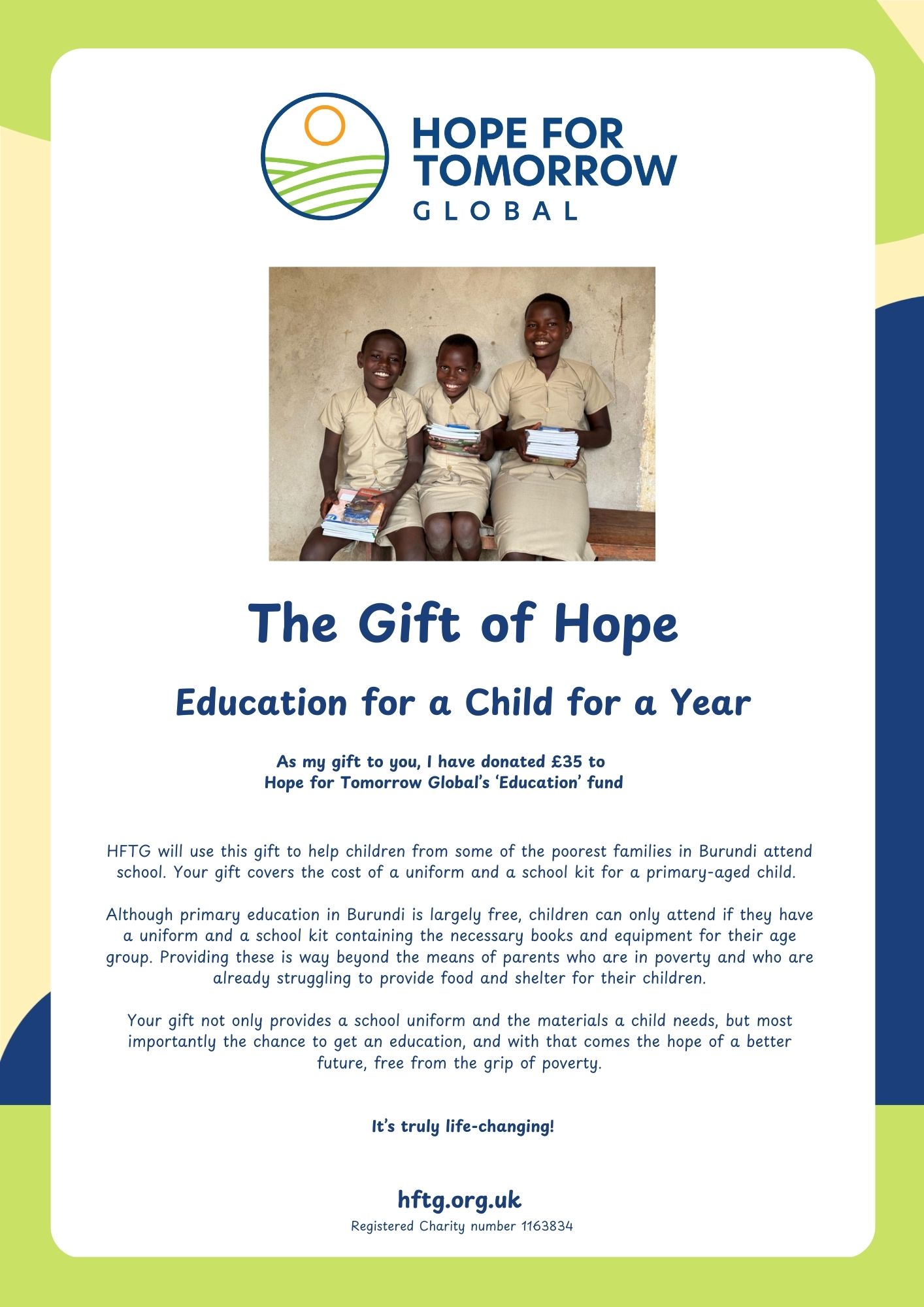 Your gift of £35 will provide a primary child with a school uniform and the materials they need, but most importantly the chance to get an education, and with that comes the hope of a better future, free from the grip of poverty.
